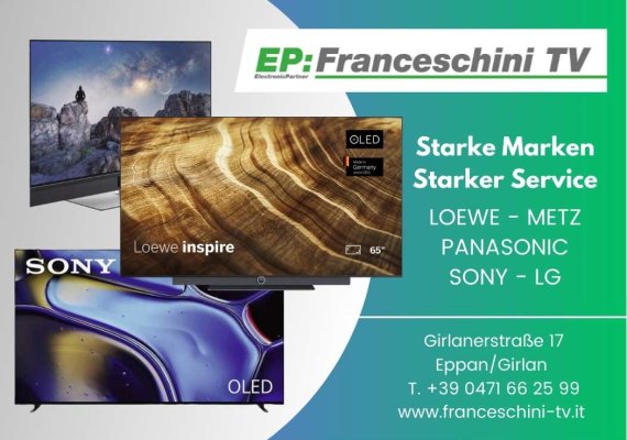 Entdecken Sie ausgewählte TV-Marken für höchste Ansprüche. Mit Loewe, Metz, Sony und LG setzen wir auf Qualität, Innovation und Design. Dazu erhalten Sie persönliche Beratung und erstklassigen Service – von der Auswahl bis zur Installation.